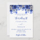 En vit bakgrund, dekorerad med blå och vita blommor. Anpassa och lägg till namn och information. Bakåt: blå bakgrund.