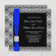 Royal blått med silver grått snöre övertäckt svart och royal med diamanttrim, marin blåsvart bröllopsinbjudning.