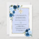 Kartkortsdesign med vattenfärgen blåa blommor och grönt löv, en blå form med faux guld ram och på baksidan samma blommor med marin blå bakgrund. Använda Anpassa verktyg om du vill lägga till information, ändra typsnitt, teckensnittets färg. Om du vill ha matchande artiklar går du till min bekräftelsesamling.
