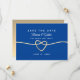 Markera datumet i tidlös elegans med vår inbjudan till royalet Blue Bröllop spara datum. Med en minimalistisk utformning med ett enkelt kalligrafiskt skript och ett gyllene rep-hjärta anger det tonen för firande i kärlek. Gå med oss när vi ger oss ut på den här resan tillsammans och spara datumet för en dag fylld av glädje och omhuldade stunder.