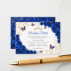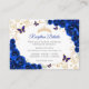 Royal blue gold Quinceanera reception details enclosure cards. Features, script font, gold butterflies, watercolor roses and tiara. Perfect for an elegant princess style glam celebration. Personalize with your own details.