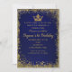 Kunglig blå och guld glitter krona 1-års födelseda inbjudningar
