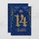 Royal Blue Guld Kronbröllops Bordnummer 14 Inbjudningar