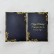 Ett mörk- och lyxblått läderfödelsekort med royal gothic guld-relief med hotande gyllene skalle som flankeras av en lagerandekrans av gyllene löv och slutligen en gloriös guldsillning av krona med bländande ljus som symboliserar ett gammalt royal. Perfekt för ett vanligt royal var födelsedag med en god perfekt för älskare av mörken och gotisk, armen häxkonst och makaber skräck.
