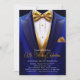 Royal Blue Guld Tuxedo, valfritt nummer på födelse Inbjudningar