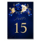 Royal Blue Gult Guld Metallic Blommigt Bröllop Bordsnummer
