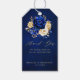Royal Blue Gult Guld Metallic Blommigt Bröllop Gif Presentetikett