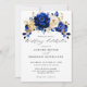 Royal Blue Gult Guld Metallic Blommigt Bröllop Inbjudningar