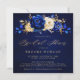 Elegant royal blått guld-tema inbjudningskort för möhippan med elegant bouquet av blommor av royal blå, marin, guld, blommor av färg i gult och blomknoppar av eukalyptus ro. Kontakta mig om du behöver hjälp med anpassning eller om du behöver någon annan produkt med den här designen.