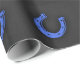 Coola, slimmad, Royal Blue horseshoe Cliart på svart och mörk grått-texturerad bakgrund. Underbar gåva till cowboyer och cowtjejer som kärlek hästar! Lägg till ditt namn eller text för att anpassa det! Bilder som används för det här objektet är licensierat och © Graphics Factory.com