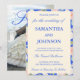Royal Blue Ivory Floral Monogram Photo Wedding Inbjudningar