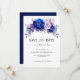 Temat elegant royal blue lilac lavender blommigt sparar datumkortet med elegant bouquet av blommor av royal blue, Navy, silver, lilac färg ro och sage grönt eucalyptus lövs. Kontakta mig om du behöver hjälp med anpassning eller om du behöver någon annan produkt med den här designen.