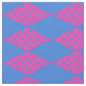 En chic Faux Patchwork mönster av Royal Blue- och Magenta- och Blue Polka Dot Diamond-former. En del av "Magenta Magic"-samlingen av Judy Adamson. Använda tillsammans med andra mönster i denna samling för fångstfiske efter öga och andra fartyg- eller syprojekt.
