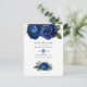 Royal Blue och Guld Blommigt Bröllop spara datum Meddelande Vykort