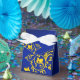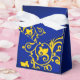 royalets blå satäng i elegant ser ut med gult guldfärgade blommigtar.En klassfavärde om du vill ha en uppskalbar formell stil bröllop eller händelse.