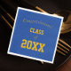 Lägg till klass i en studentfest med dessa pappra blöjor som innehåller färger av royalet blått och guld, med text utskriven i guld färg. Redigera klassår efter behov. Markera din pappra napkin stil.