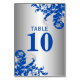 © 2022 Socialite Designs. Vår elegant, dubbla-sidade royal blå och silver blomstrande bordsnummer-kort är ett perfekt som kompletterar din bröllop eller speciella händelse. Byt bara ut numret på kortet för varje bord.