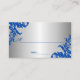 © 2018 Socialite Designs. Vackra hörnsnurrar och flourerar bord-kort i royal blå och silver-grått, med silver-utseende bakgrund. En utformning av eleganten för vilken tid som helst under året firande. Designen på baksidan gjordes tillgänglig så att du kan lägga till ytterligare information.
