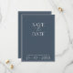 Minsta Royal Blått opulensskripttypografi Bröllop Bröllop spara datum-kort. Föregående imponera på dina gäster i bröllop med det här trendiget royal blue bröllop spara-the-date-kortet med ett vackert vitt skript på royalets blå bakgrund. Det här spara-till-datum-kortet i bröllop har en enastående blå utformning, med moderna och minimala vibes, perfekt för ditt enkla, trendig, minimalistiska bröllop. Den minimala och moderna layouten uppmärksammar det vita skriptet, vilket står i kontrast till royalets blå bakgrund. Med detta spara-till-datum-kort i bröllop kommer tonen att användas för en vacker inställning i bröllop, omgiven av båda neutraltens blommigtar, och bröllop-dekanter. En perfekt utöver vintern eller det traditionella firande.