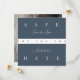 Öka förväntningen på din speciella dag med våra Chic Royal Blue Opulence och White Simple Photo Bröllop spara datum kort. Med enkelhet och elegans blandar de här korten sömlöst en ren, minimalistisk design med den personliga beröringen av dina omhuldade ögonblick som fångas i ett blått och vitt foto av royalet. Den sofistikerade palettens estetik i mörken tillför en aning vinter till det moderna och traditionella inslag, vilket skapar en chic och ett tidlöst meddelande. Varje kort är en harmonisk blandning av enkelhet och storhet och erbjuder ett minimalistiskt men opassande påstående som på ett vackert sätt kapslar in kärnan i ert kommande bröllop.