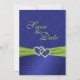 Det här royalet blått och limmargrönt dubbla med tryckt text på menyfliksområdet och juveler Spara datumkortet matchar inbjudan och andra artiklar som visas nedan. Texten är allt anpassade och det är också de pappra valen. Om du behöver andra objekt i samma design, t.ex. fotokort, mottagningskort, bröllop-bulletin, bord-kort osv., skicka din förfrågan via e-post. Befintliga matchande artiklar visas nedan.