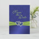 Det här royalet blått och limmargrönt dubbla med tryckt text på menyfliksområdet och juveler Spara datumkortet matchar inbjudan och andra artiklar som visas nedan. Texten är allt anpassade och det är också de pappra valen. Om du behöver andra objekt i samma design, t.ex. fotokort, mottagningskort, bröllop-bulletin, bord-kort osv., skicka din förfrågan via e-post. Befintliga matchande artiklar visas nedan.