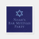 Det här royalet blå Pub Mitzvah party-pappra napkin har en vacker, konstnärlig stjärna av David teckning överst. Fyll i anpassningsbarna med personligen namn på dekorationen.