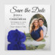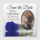 De här magneterna sparar datumkortsområdet på ett underbart sätt att låta dina vänner och familj få veta om ditt kommande bröllop. De har en vacker design som är både romantisk och elegant med ett enda, långsökt royal blått eller kobolt färgad ro som reflekterar i ett bassäng av vatten med vinkara och krusande föremål och ditt foto i en ovalformad ram på en klassisk vit bakgrund. Rubriken läser Spara datum med utrymme för namnen, datum och plats.