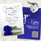 Detta vackra inbjudningskort för möhippan har en fantastisk utformning med ett enda, gammaldags royal blått ro som ljuger på sidan av spegeln i bassäng i vatten. Rubriken lyder: "Nåt blått innan jag skriver i elegant, moderna skribentbokstäver med blommor, utslag och söta romantiska hjärtan. På baksidan finns utrymme för en QR-kod som gör det enkelt för gästerna att hitta möhippans register. Underbart sätt att fira bruden att vara!