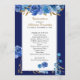 Quinceanera-programmet för Blommigt i Royal Blue Ro och Guld med anpassningsbar, speciellt tack och alla andra detaljer som du vill lägga till. Elegantens ramutformning med vattenfärgen ro blommor blommar och löv i blå och guld nyans. Modern chic för ditt 15-årsjubileum. Bläddra i min samling för Ro och Guld Löv för att hitta matchande produkter eller meddela mig om du vill skapa de mallar du behöver.