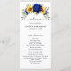 Royal Blue Rustic Solros Modern Blommigt Bröllop Program