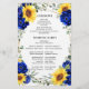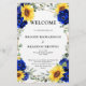 Elegant och det moderna programmet för landsbyggsbröllop i rustik har en ljusstark gult solros, Royal blå ponnyer, baby andedräkt, gipsofiilabisk blommigt ram/andedräkt med eukalyptus löv och guld glitter ram. Hitta fler matchande utformningar och variationer från min "blissweddingpaperie"-butik. Och kontakta mig gärna för ytterligare anpassning eller matchning av objekt.