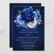 Royal Blue White Silver Metallic Blommigt Bröllop Inbjudningar