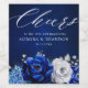 Royal Blue White Silver Metallic Blommigt Bröllop Vinflaska Etikett