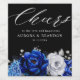 Royal Blue White Silver Metallic Blommigt Bröllop Vinflaska Etikett