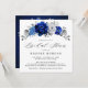 Elegant royal blått vitt silver-tema inbjudningskort för möhippan med elegant bouquet royal blue, marin, silver, rena vita blommor från färg ro och sage grönt eucalyptus löv. Kontakta mig om du behöver hjälp med anpassning eller om du behöver någon annan produkt med den här designen.