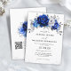 Royal Blue White Silver QR Code Blommigt Bröllop Inbjudningar