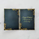 Ett mörk- och lyxfärgat cyanläderfödelsekort med royal gothic guld-relief med hotande gyllene skalle som flankeras av en lagerkrans av gyllene löv och slutligen en gloriös guldsillning krona med bländande ljus som symboliserar ett gammalt royal. Perfekt för ett vanligt royal var födelsedag med en god perfekt för älskare av mörken och gotisk, armen häxkonst och makaber skräck.
