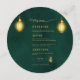 Menykort för royal Emerald Grönt Golden Ljus Round Bröllop. Det här runda bröllop-menykortet är som lite biet av magi! Framsidan har en vacker grönt med gnistrande guldfärgade ljus-tvillingar över, ge ett magiskt intryck. Du hittar parets namn elegant skriven, tillsammans med bröllop datum och platsen. Baksidan är också grönt, med samma fantastiska guldljus. I toppen står det "Menu" i ett vackert teckensnitt. Nedan hittar du en lista över alla utsökta diskar, från starter till desserter, allt skrivet i elegant guld. Det är en verkligt speciell beröring för bröllop firande.