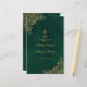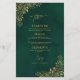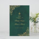 Royal Emerald Grönt Guld Blommigts Islamic Bröllop Menu Card. Menyn bröllop är verkligen elegant! På framsidan finns en vacker bakgrund till grönten vid frammarsch med känsliga guld-blommigtar. Kammustiken är mycket utsökt, till att börja med "Bismillah" och den arabiska frasen "wa khalaqnakum azwaja" (som betyder "Och vi skapat dig i par"), följt av parets namn, datumet bröllop och platsen. Baksidan är också grönt, och den visningar elegant "Menu" överst. Själva menyn presenteras på ett utmärkt sätt i kalligrafin i guld, där alla utsökta starter, huvudstjärnor, kurser och efterrätter listas. Det är en verkligt speciell beröring för bröllop firande