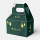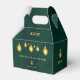Royal Emerald Grönt Guld Ljus Bröllop Tack favoritboxar Royalet Emerald Grönt Wedding Favor Boxes är en aning magi! Framsidan har en vacker grönt med gnistrande guldfärgade ljus-tvillingar över, ge ett magiskt intryck. Du hittar parets namn elegant skriven tillsammans med bröllop-datumet. Baksidan är också en framväxande grönt som är försedd med samma fantastiska guldljus och ett sött "Tack"-budskap. På sidan hittar du ett charmerande monogram av parets initialer. De här lådorna är perfekter för att tillföra lite elegans och lyx till dina bröllopsfavoriter, vilket skapar en verkligt oförglömlig upplevelse för dina gäster.