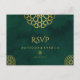 Royal Emerald Grönt Guld Ornate Bröllop OSA Postcard. Det här OSA vykortet är en riktig bedövning! På framsidan finns en vacker bakgrund till grönten med elegant guld eller andra detaljer. Det står "OSA" på ett snyggt, följt av parets namn och bröllop. Baksidan är unik - den ena halvan är vit, den andra är att samma elegant framkallar grönt. Den vita sidan har all viktig information: OSA deadline, dina val (acceptera eller avböja) och plats för hur många gäster som kommer. Grönten har en punkt för returadressen, skriven i samma elegant stil som framsidan. Det är mycket krångligt och lätt för användan.