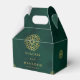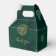 Royal Emerald Grönt Guld Ornate Bröllop Tack Favorboxes. De här Royalet Emerald Grönt Wedding Favor Boxes är en aning ren opulens! På framsidan visas en vanlig bakgrundsdroppe för grönt som går att använda och som är försedd med uppgifter om guld. Du hittar parets namn elegant skriven i guld, tillsammans med datumet i bröllop. Baksidan av spegeln den här elegansen med en matchande bakgrund för grönten och en detaljerad beskrivning. Ett uppriktigt "Tack"-meddelande visas i fet blommigt typografi, vilket ger en aning romantiskt charm. De här lådorna är perfekter för att tillföra lite lyx och sofistikering till dina bröllopsfavoriter, vilket skapar en verkligt oförglömlig upplevelse för dina gäster.