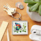 "Royal Flutter: Red and Blue Butterfly Keychain" Fyrkantig Silverfärgad Nyckelring