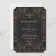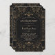 Royal Gold Svart Stor Gatsby Bröllopskort design. Royal, Romantisk, Vintage-kort design med en Stor Gatsby art deco-stil, en Bröllop i 1920-talets gamla Hollywood, med falskt guld folie Fleur-de-lis överlägg, avdelare och vacker typsnitt, på en svart texturerad bakgrund. Använd Anpassa verktyg för att lägga till din information. För mer, besök min Royal Gold Svart Stor Gatsby-samling.