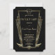 Unik glamour, Vintage kortdesign med en falsk guld art deco-form med en vapensköld för dina initialer, falska guld Fleur-de-lis som en kunglig arv, en rolig 1920-tals Great Gatsby, gammal Hollywood-stil, vacker typsnitt på en svart bakgrund. Använd Anpassa verktyg för att lägga till din information. För mer, besök min Royal Guld Art Deco Monogram Brölloppssamling.