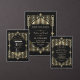 Royal, Romantic, Vintage card design med en Underbar Gatsby, Roaring 1920's old Hollywood Art Deco stil, royal faux guld fleur-de-lis, vintage typsnitt, på baksidan av den vackra Art Deco mönster på svart. Använda Anpassa verktyg för att lägga till information. För mer information, besök min Glam Royal Guld Black Collection.