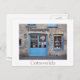 vykort för de blå dörrarna i Cotswold-stensspalten i royalet Highgrove Shop, som ägs av prins Charles, prinsen av Wales, i Tetbury i Cotswädds, England, Förenade kungariket, med ett vitt gräns och texten: "Kotswappar".