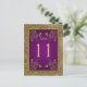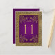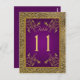 Det här royalet lila och guld blommigt FAUX-texturerat vykort för bordsnummer matchar den bröllopsinbjudan som visas nedan. **Du måste ändra nummer 11 till vart och ett av de bordsnummer du behöver, lägga till det i din kundvagn och sedan returnera och upprepa det processaa tills du har alla de individuellt numrerade kort du behöver i din kundvagn. Lägg den på en liten ål eller i dina centerbitar. Om du behöver hjälp kan du skicka e-post till niteowlstudio@gmail.com.