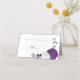 royal lila och vita blommor botaniska bröllop pla placeringskort